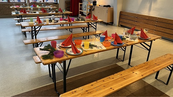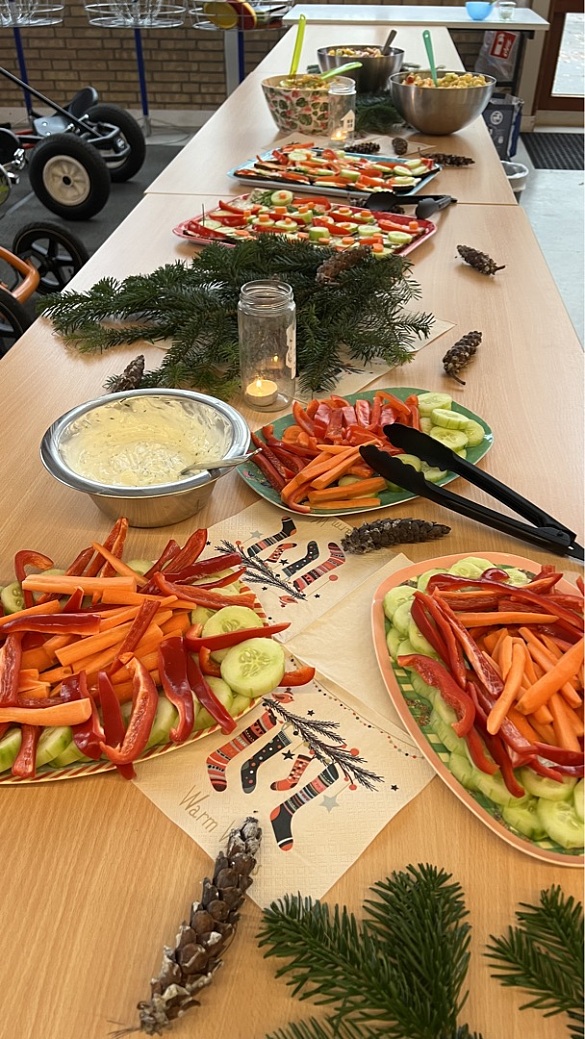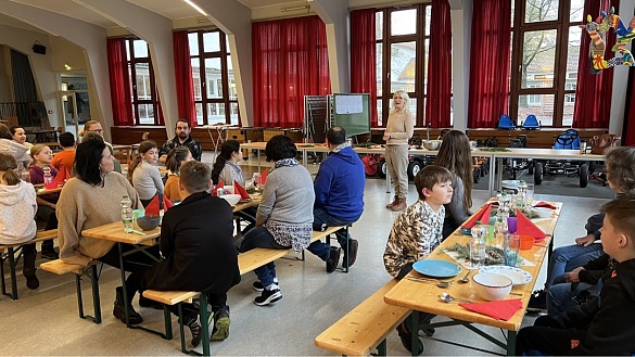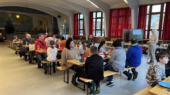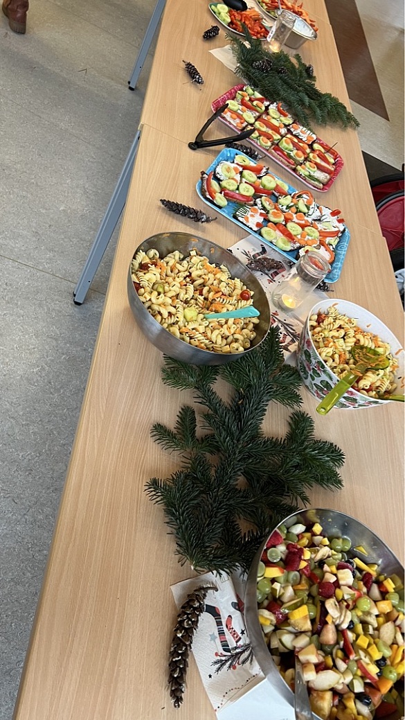 In der letzten Woche gab es dann das große Abschlussbufett, zu dem noch einmal alle vorher erprobten Rezepte in leckere Gerichte verwandelt und angeboten wurden. In der Aula fand dann unter Beteiligung der Eltern sowie der Schülerinnen und Schüler ein vorweihnachtliches gemeinsames Essen statt.