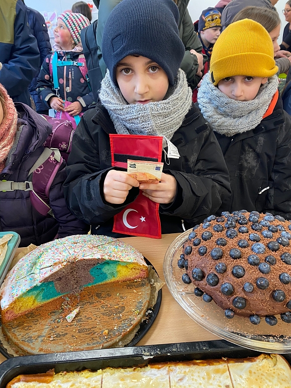 Als Zeichen der Anteilnahme und unseres Mitgefühls haben Eltern und Mitarbeiter:innen der Schule am Pürschweg am Freitag, den 24.02.2023 eine Spendenaktion in Form eines großen Kuchenverkaufs gestartet.