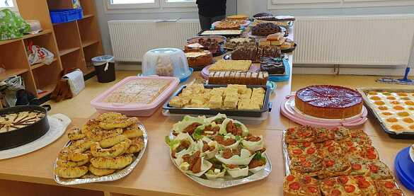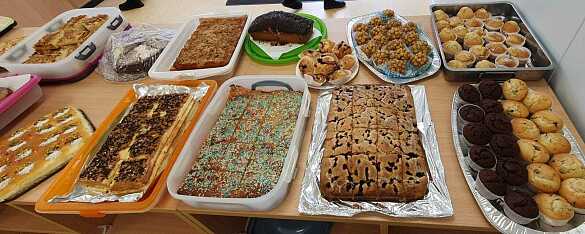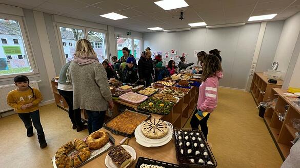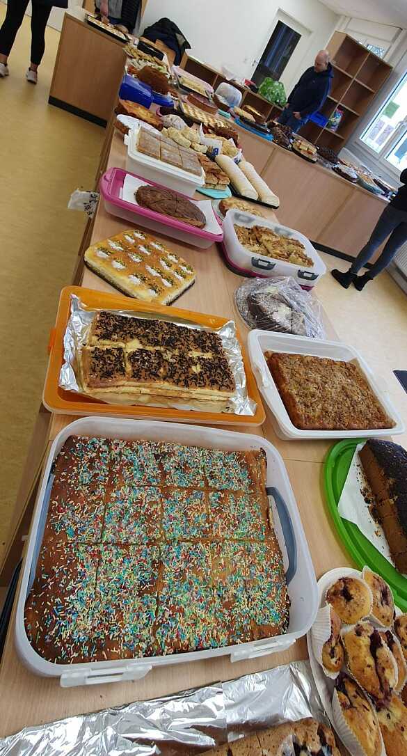 Eine große Anzahl von leckeren Kuchen wurde von vielen engagierten Eltern gebacken und im Mensaanbau der Schule von fleißigen Helfer:innen verkauft.