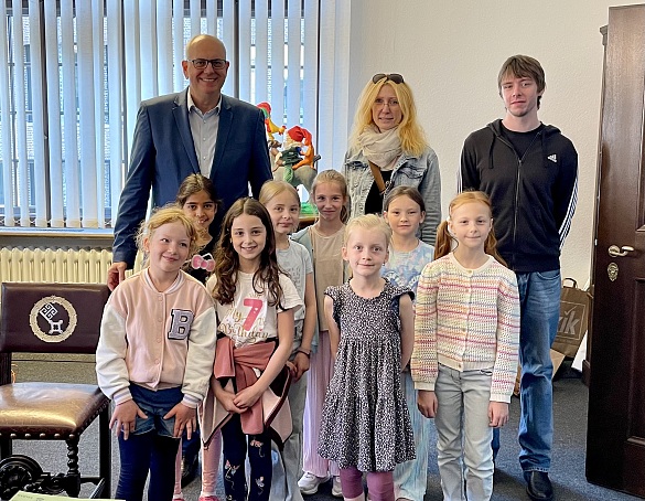 Herr Prange war über unsere Schule gut informiert und kannte auch unseren Pürschwegrock, den die Kinder daraufhin ihm und auch dem Bürgermeister Herr Bovenschulte gerne vorsingen wollten. Später am Vormittag hatte dieser dann auch einen Moment Zeit, um mit den Kindern zusammen zu singen. Die Mädchen fanden es super, dass unsere Schul-Hymne im Rathaus bekannt ist und hatten sich sehr über die gemeinsame Gesangseinlage gefreut!