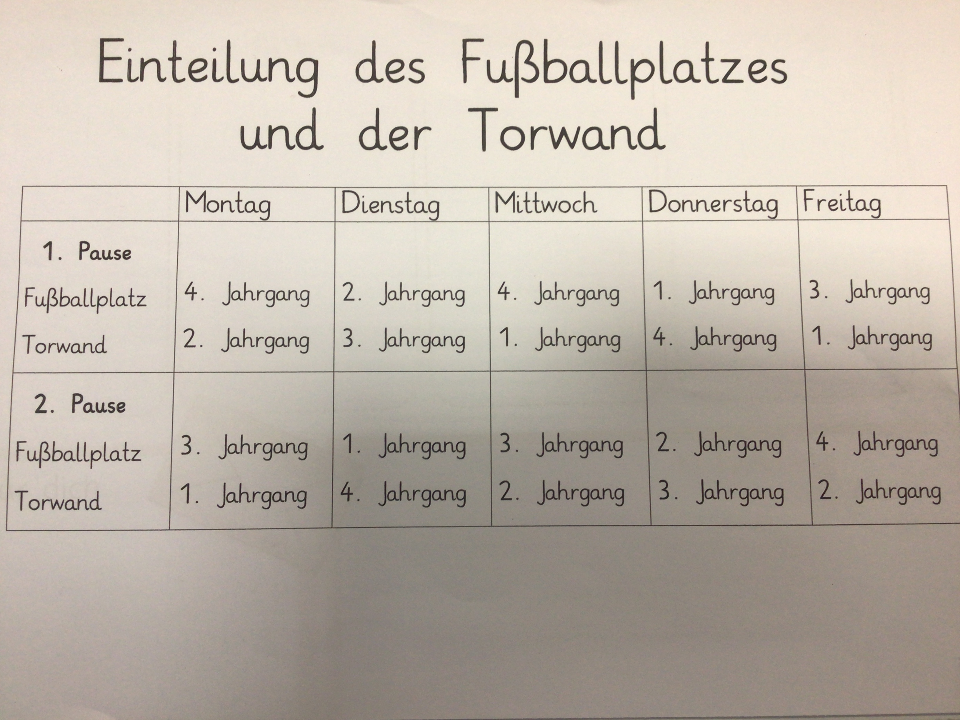 - Auf dem Fußballplatz darf nur die Klassenstufe spielen, die auf dem Spielplan steht!