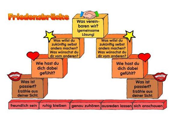 Mit Hilfe der "Friedensbrücke" versuchen wir Streitigkeiten friedlich und nachhaltig zu lösen.