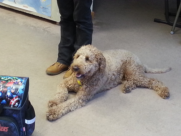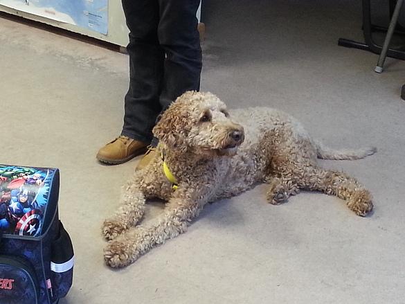Unsere Lehrerin Frau Brosk ist Mollys Frauchen und kommt jeden Tag mit ihr in die Schule.